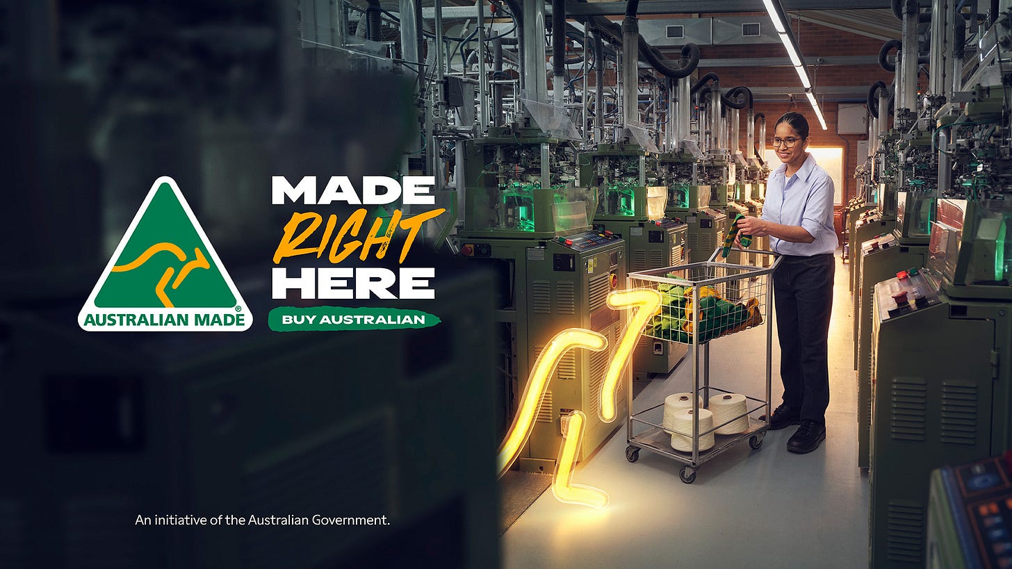 The $20M Made Right Here campaign encourages Australians to buy local and support Australian makers, growers, and jobs.