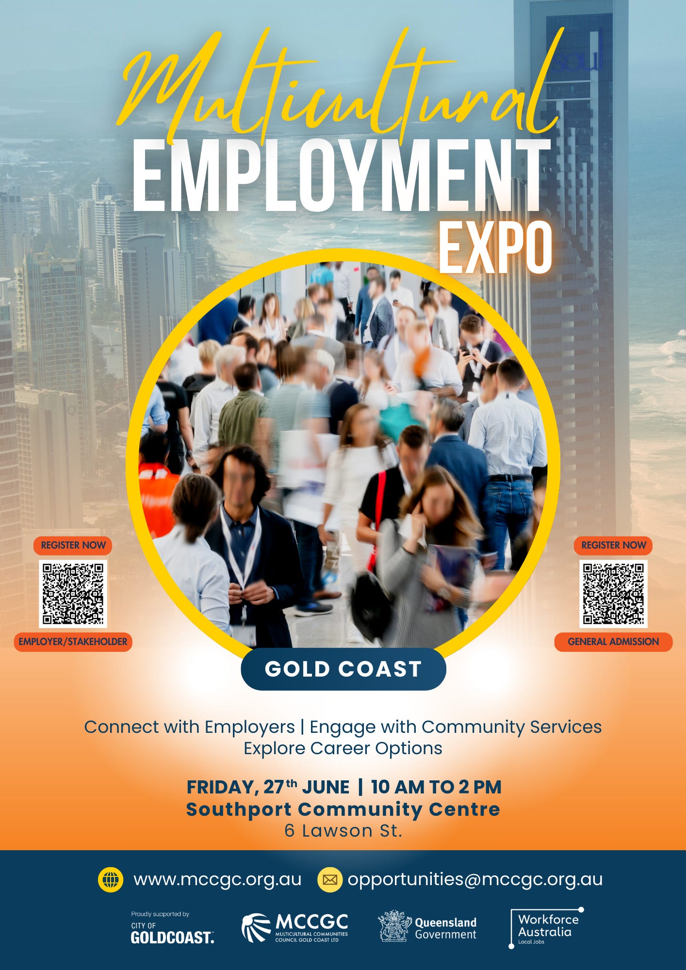 The Multicultural Communities Council Gold Coast (MCCGC) will host its second Multicultural Employment Expo on Friday, 27 June 2025, at Southport Community Centre, 6 Lawson St, from 10:00 AM to 2:00 PM.
