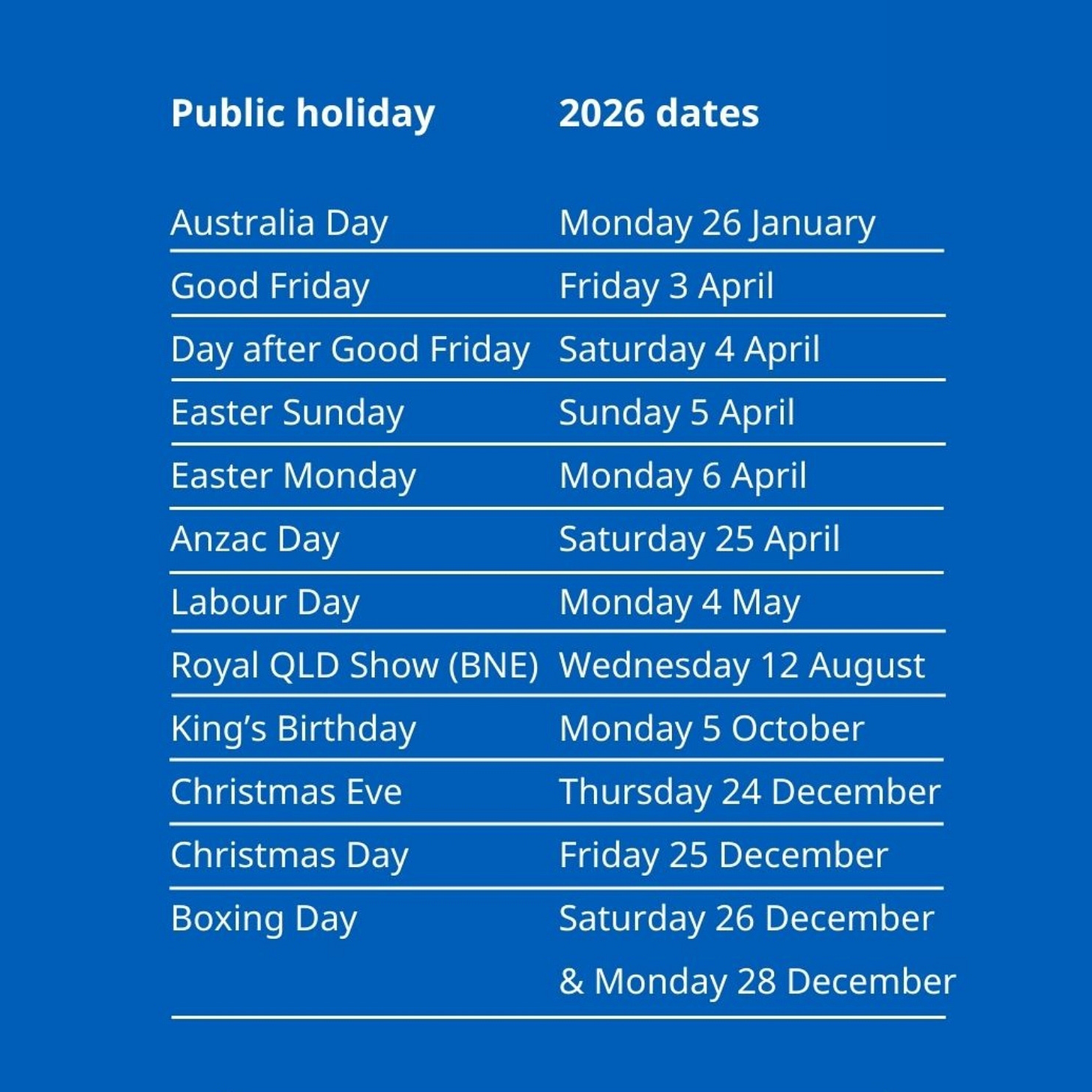 3. QLD’s public holidays for 2026