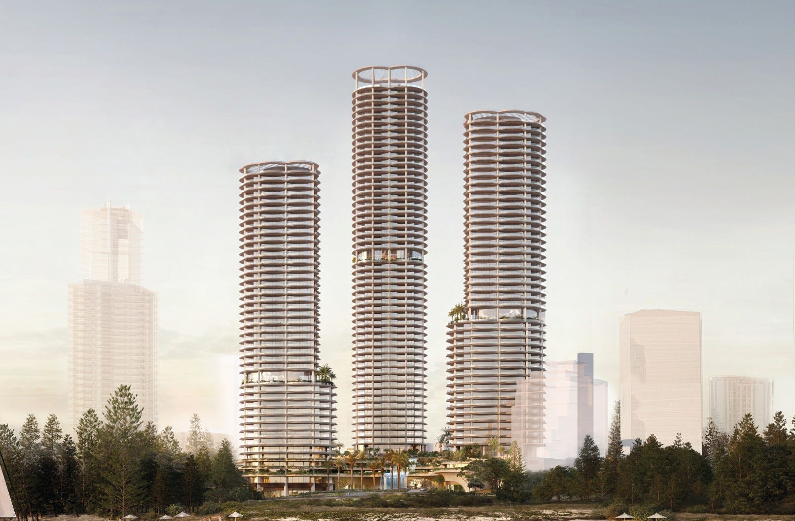 Under the plans lodged with the City of the Gold Coast by DD Resort Living, the development would comprise three towers offering 634 apartments, a world-class wellness centre, restaurants and shops