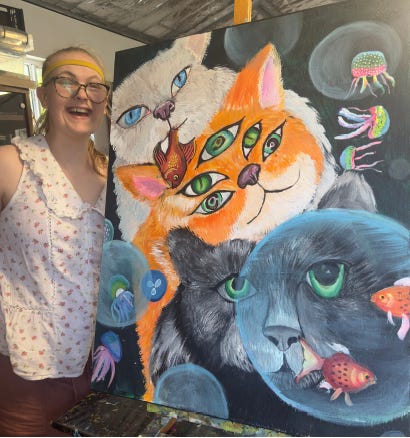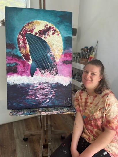 KIKI the artist is a Nerang local. She said that painting brings her joy and lets her share her world with colour and imagination. Her confidence has increased dramatically since beginning art classes at Kookaburra, and she is looking forward to sharing her work at Infinitive Perspectives.