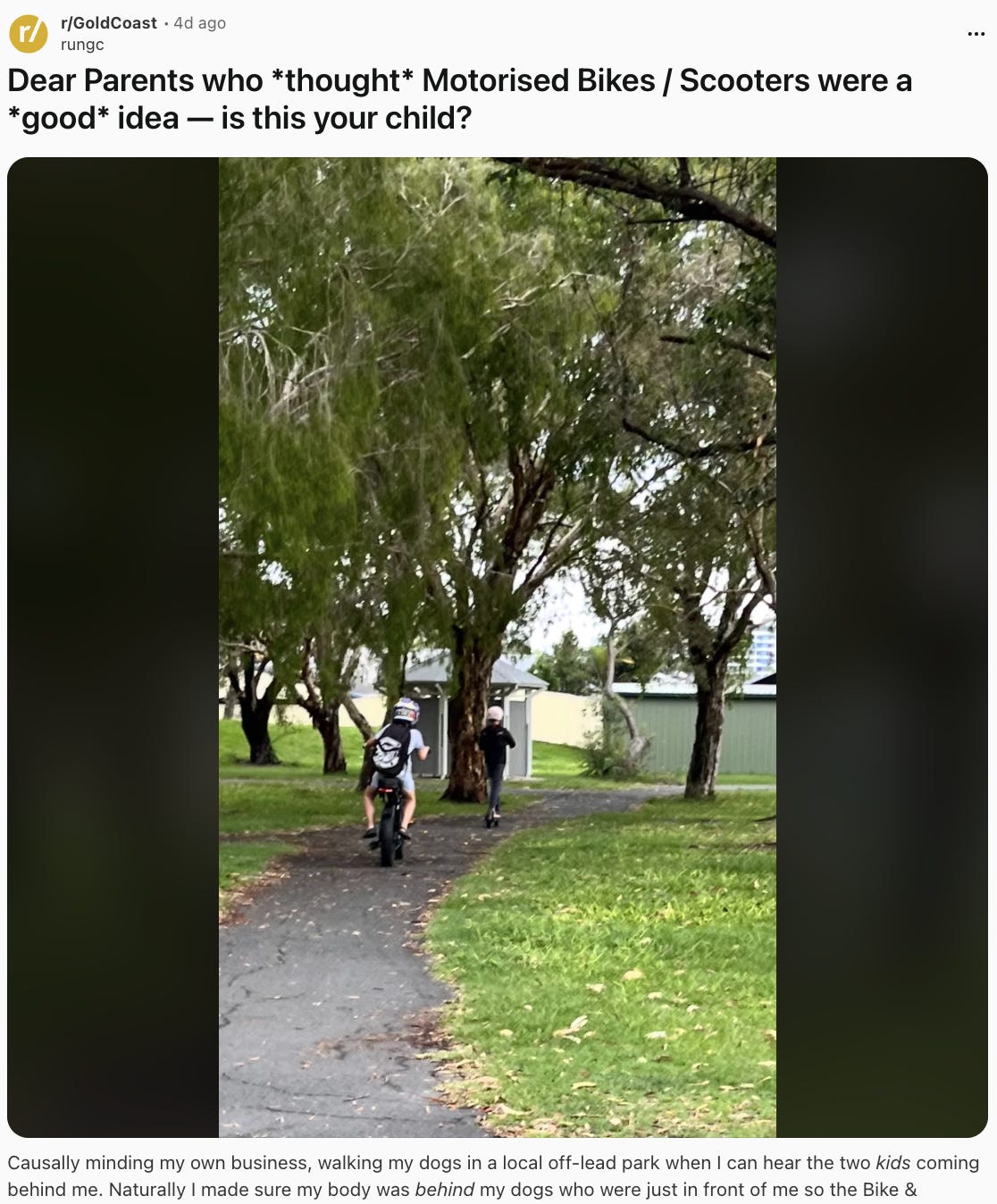 Trending: To parents who *thought* Motorised Bikes / eScooters were a *good* idea..