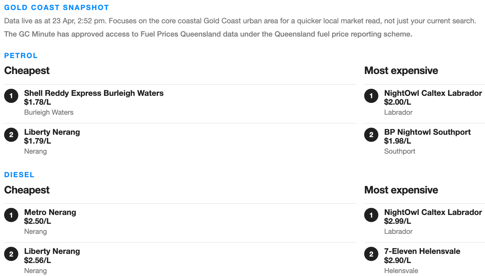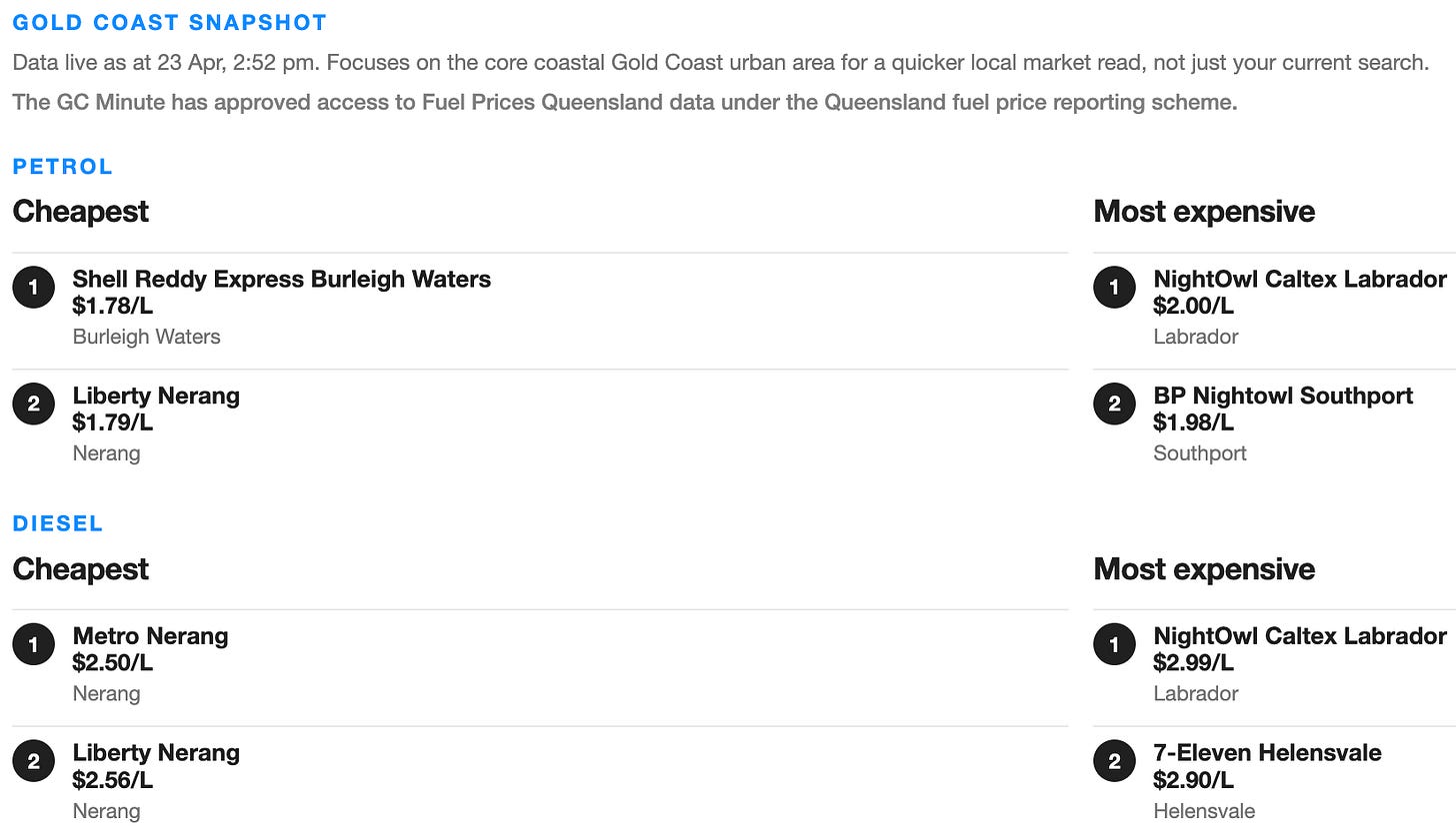 ⛽️ In case you missed it: The GC Minute’s live, local, cheap fuel finder.